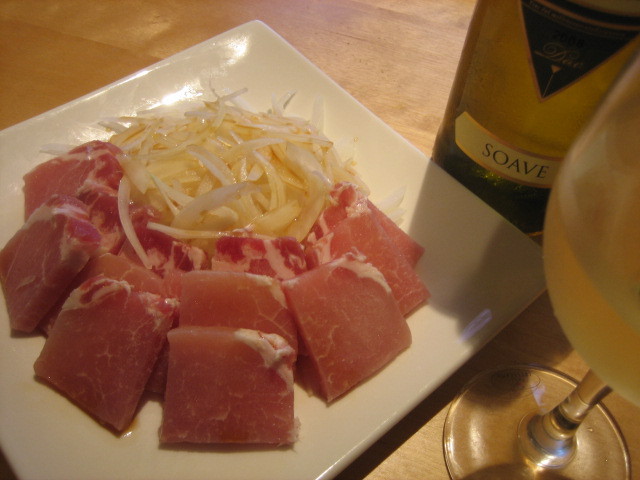 塩味も穏やかでなかなか美味しい。ソアヴェとも良く合う。